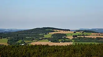 Krajina z vrcholu Metodka (788 m n. m.) v centrální části členité Pohledeckoskalské vrchoviny, georeliéfem tvořící v rozsahu 395 až 822 m n. m. geomorfologický okrsek