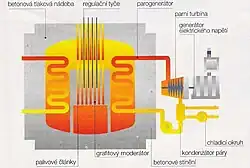 - rozměry aktivní zóny 9,1 m v průměru a 8,5 m na výšku