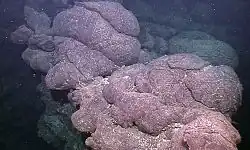 Obrázky, zvuky či videa k tématu polštářová láva na Wikimedia Commons - Animace vzniku polštářové lávy (web Geoparku Český ráj)