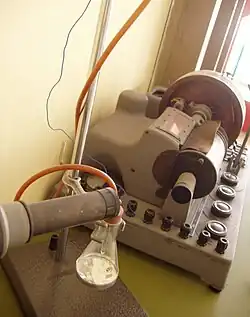 Obrázky, zvuky či videa k tématu Polarografie na Wikimedia Commons - Fotografie tří typů polarografů z výstavy v Karolinu