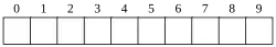 Prázdné jednorozměrné pole o 10 prvcích (zde indexováno od nuly, některé jazyky indexují od jedničky)
