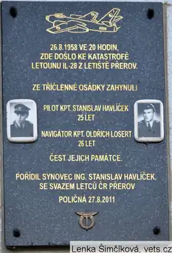 - ↑ V Poličné odhalili pamětní desku obětem letecké havárie. www.valasskemezirici.cz [online]. [cit. 2014-04-29]. Dostupné v archivu pořízeném dne 2014-04-29.