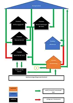 Hlavním představitelem vlády je premiér. Je jmenován prezidentem. Ministry jmenuje prezident na radu premiéra. Vládu tvoří rada ministrů, skládající se z premiéra, místopředsedy vlády, ministrů, náměstků ministrů a generálních tajemníků. Parlament jí musí vyslovit důvěru.