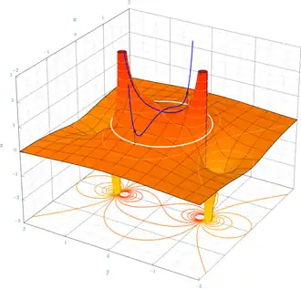 a pak vezmeme reálné x a y. Protože y je reálné, absolutní hodnota cos(y) + i sin(y) je nutně 1. Proto absolutní hodnota e z může být 1 pouze tehdy, když e x je 1; protože x je reálné, stane se to pouze pro x = 0. Proto z je ryze imaginární a cos(y) + i sin(y) = 1. Protože y je reálné, což se stane pouze, pokud cos(y) = 1 a sin(y) = 0, tak y je celé číslo větší než . Následně se singulární body této funkce objeví v