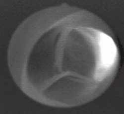 Každá poloměsíčitá chlopeň je tvořena obvodovým vazivovým prstencem, na který se zevnitř upínají tři kapsy poloměsíčitého tvaru. Kvůli nim je prstenec trojitě zakřivený (podle průběhu na něm upnutých kapes). Poloměsíčitá chlopeň v levé komoře se označuje jako aortální chlopeň (valva aortae), v pravé komoře je plicnicová chlopeň (valva trunci pulmonalis).[3]