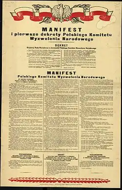 Manifest Polského výboru národního osvobození byl publikován dne 22. července 1944 v Moskvě a o jeho přijetí informovalo Rádio Moskva. Následně byl i v Moskvě vytištěn, ačkoliv oficiálně dle historiků z dob existence Polské lidové republiky byl přijat v Chełmu.