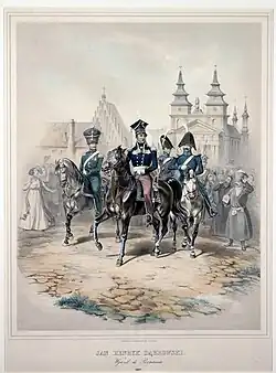 V roce 1806 vypuklo v pruském záboru tzv. velkopolské povstání vedené Janem Henrykem Dąbrowskim. Protože se v zásadě snažilo pomoci Napoleonovi bojujícímu právě v tu dobu v Prusku, nechal Napoleon rok poté zřídit na části území předtím zabraném Pruskem a Rakouskem Varšavské knížectví, které se stalo jeho spojencem.[33] Po Napoleonově porážce roku 1815 však bylo zrušeno a na jeho místě bylo, rozhodnutím Vídeňského kongresu, zřízeno autonomní Království polské (tzv. Kongresové Polsko či Kongresovka), podléhající ruskému carovi.[34] Roku 1831 vypuklo ve Varšavě a dalších místech Listopadové povstání, jedno z největších národních povstání 19. století, které však bylo carskou armádou potlačeno.[35] Následkem toho byla v roce 1832 autonomie knížectví omezena. V roce 1863 vypuklo Lednové povstání.[36] Vzniklo spontánně z odporu mladých Poláků, kteří odmítali sloužit v Ruské armádě a utíkali do lesů. Za osmnáct měsíců bylo ale poraženo a roku 1866 byly zrušeny poslední zbytky polské autonomie v rámci Ruska.