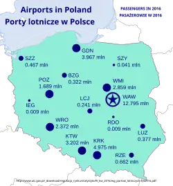 - ↑ Liczba obsłużonych pasażerów oraz wykonanych operacji w ruchu regularnym oraz czarterowym w polskich portach lotniczych 2008–2009