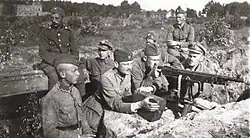 Poláci ale též tvrdě bojovali, jejich exilové vojsko se proslavilo zejména v bitvě u Monte Casina[54], pod sovětským velením fungovala 1. polská armáda podílející se na dobytí Berlína, polští piloti se vyznamenali v 303. stíhací peruti během Bitvy o Británii.[55] Na polském území se rovněž rozvinulo mohutné odbojové hnutí, největší jeho organizací byly Polský podzemní stát a Zemská armáda (Armia Krajowa).[56] Proslulou odbojovou akcí se stalo neúspěšné Varšavské povstání v roce 1944, v němž zahynulo přes 200 000 lidí a Varšava byla po něm Němci srovnána se zemí.[57] Jedním ze záměrů povstání bylo osvobodit Polsko ještě před příchodem Rudé armády a zabránit tak poválečnému nástupu komunistů. Přesně to se ale nepodařilo a sovětský vůdce Stalin také přesně kvůli tomu nechal povstání vykrvácet.[58]