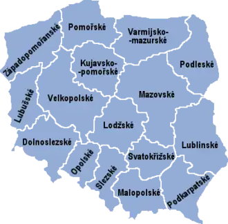 Od 1. ledna 1999 má Polsko trojstupňové členění na 16 vojvodství (województwo), okresy (powiat) a obce (gmina). Vzhledem k rozdílnosti chápání českého výrazu „obec“ oproti polskému – gmina je spíše ekvivalentní působnosti pověřeného obecního úřadu – se v článcích používá výraz gmina.