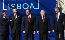 Konzervativní část veřejnosti však s těmito výsledky transformace nebyla zcela spokojena. V roce 2005 se stal premiérem Jarosław Kaczyński a prezidentem jeho dvojče Lech Kaczyński. Již během kampaně před parlamentními a prezidentskými volbami bratři Kaczyńští a jejich strana Právo a spravedlnost (PiS) operovali termínem „čtvrtá republika“ (IV Rzeczpospolita).[75] Čtvrtá republika měla podle nich opravit všechno špatné ze třetí republiky, zejména skoncovat s korupcí, provést důslednou dekomunizaci, rozbít vazby na lidi z předešlého režimu apod. Strana nastolila silně konzervativní a nacionalistický politický kurz, který na evropské úrovni budil kontroverze.[76] Vítězství Občanské platformy v parlamentních volbách v říjnu 2007 posunulo zemi znovu blíže k liberálnímu režimu.