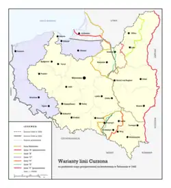 V roce 1945 jaltská konference přijala rozhodnutí, že východní hranice Polska povede po Curzonově linii a Sovětský svaz většinu svého původního záboru ve východních oblastech osídlených převážně Poláky, Bělorusy a Ukrajinci anektoval. Jako „odškodnění“ byla k Polsku naopak připojena západní „nová území“ až po dnešní hranici s Německem na Nise a Odře a dále část Východního Pruska.[59][60] Posun hranic vyvolal obrovské nucené přesuny obyvatelstva, kdy Poláci přicházeli z území anektovaných Sovětským svazem a osidlovali zejména západní území, z nichž bylo vyhnáno německé (a tedy prakticky veškeré) obyvatelstvo. V roce 1947 během Operace Visla bylo ze svých domovů násilně vysídleno i ukrajinské obyvatelstvo.[61] Jaltská konference rovněž ignorovala polskou exilovou vládu v Londýně a uznala provizorní prokomunistickou vládu zformovanou v Sovětském svazu, což řada Poláků dodnes vnímá jako zradu Západu.[62] Faktem však také je, že Stalin nedodržel řadu slibů, které ohledně Polska západním spojencům dal, například že umožní demokratické volby.[63][64]