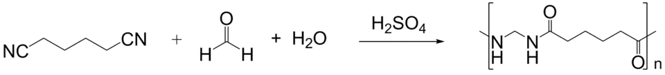 Polyamidy lze získat také z dinitrilů v kyselém prostředí, tento proces se nazývá Ritterova reakce a používá se na výrobu nylonu 1,6 z adiponitrilu, formaldehydu a vody.[4] Další možností je nechat dinitrily reagovat s dioly.[5]