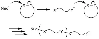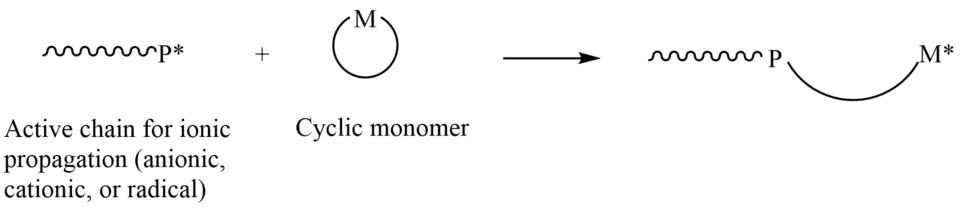 Polymerizace s otevíráním kruhu mohou probíhat radikálově, aniontově, nebo kationtově.[11]