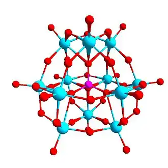 40 se skládá ze sítě tvořené dvanácti oktaedrickými wolframanovými oxyanionty rozprostírajícími se kolem fosforečnanové skupiny.