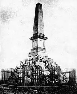 Pomník je členěn do tří částí. Spodní jest násypné těleso, jež se kuželovitě zužuje, slouží k uložení pamětních kamenů. Dělí se na dva stupně, jeho celková výška je cca tři metry. Uprostřed horní plošinky je umístěn betonový dřík o rozměrech 1,5 × 1,5 m, a výšce dvou metrů. Na něm se tyčí vlastní pískovcový pomník, jenž jest šest metrů vysoký.