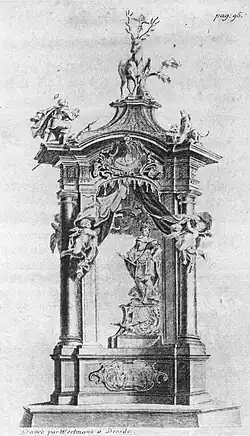 Monumentální barokní pomník nechal hrabě František Antonín Špork postavit v místech, kde při slavnostním honu 2. listopadu 1723 udělil Karlu VI. odznak řádu sv. Huberta.[2] Předáním vyznamenání se chtěl zalíbit císaři a získat pro sebe vytoužený Řád zlatého rouna. Toho se však nikdy nedočkal.