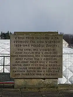 - ↑ a b pomník s pamětní deskou a sochou rudoarmějce - Památkový Katalog. pamatkovykatalog.cz [online]. [cit. 2021-01-20]. Dostupné online.
