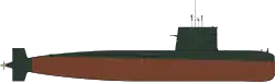 | Výtlak | 1700 t (na hladině) 2250 t (pod hladinou) |