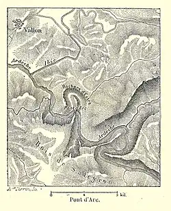 V jeho těsné blízkosti se nalézá jeskyně Chauvet známá svými pravěkými jeskynními malbami starými cca 30 000 let.
