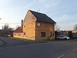 ![]() Dům čp. 6 na návsi, před ním památkově chráněná socha svaté Anny Samétřetí | |