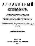 • Seznam šlechty – Алфавитный список дворянских родов Гродненской губернии 1900, str 6.