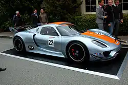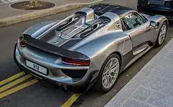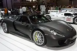 Porsche 918 Spyder je plug-in hybridní sportovní automobil se středovým uložením motoru, vyráběný německou automobilkou Porsche.[1] Spyder je poháněn 4,6 litrovým motorem V8 s atmosférickým sáním poskytující výkon 616 metric horsepower (608 bhp; 453 kW) a také dvěma elektromotory dodávajících dalších 283 metric horsepower (279 bhp; 208 kW) koňských sil s kombinovaným výstupem 899 metric horsepower (887 bhp; 661 kW). 918 Spyder disponuje řádkou 6,8 kWh lithium-ion baterií, což umožňuje dojezd 19 km čistě na elektřinu.
