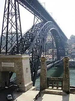 Nejznámějším mostem je pak dvoupatrový most Ludvíka I. (Ponte Dom Luís I) o výšce 45 m, jehož stavbu řídil Eiffelův kolega Théophile Seyrig. Vystavěn byl v letech 1881–1886.[21] Horní patro v současnosti využívá linka D portského „metra“, vede jím také chodník pro pěší.