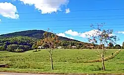 ![]() Střed Postřelné a v pozadí hora Tlustec | |