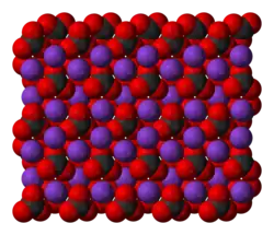 Struktura krystalu uhličitanu draselného (K2CO3)