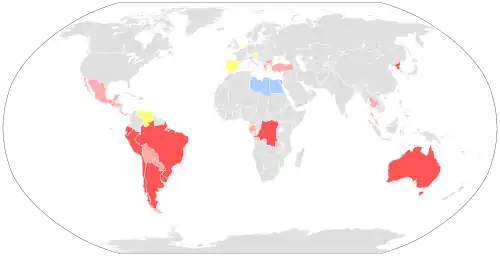 - Československo (1920–1954 de iure, de facto do r. 1989)[2]