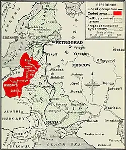Jak Rusové ustupovali, centrální mocnosti oblast obsadily (1915) a následně navrhly založení Polského království pod svým protektorátem. V brestlitevské smlouvě z března 1918 Rusko (v té době zapletené do občanské války ) postoupilo Německé říši a Rakousko-Uhersku všechna polská území, která do té doby ovládalo,
