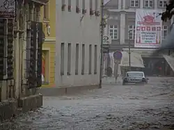 Zatopená ulice v centru Frýdlantu (7. srpna 2010)