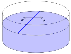 Jako povrchové napětí lze označit sílu, která působí kolmo na délku myšleného řezu povrchem, dělenou touto délkou, a která leží v tečné rovině k povrchu v daném bodě. Pokud působí na úsečku délky v rovině povrchu kolmá síla , pak povrchové napětí vyjádříme jako