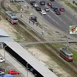V březnu 1998 byla otevřena tramvajová linka č. 8, která spojuje sídlistě Pozňaky a Lysovyj masyv. Dne 15. dubna 2022 byla spuštěna linka č. 28d, která jezdí do Troješčyny. Nedaleko stanice metra se také nachází tramvajová smyčka, kde již výše zmíněné linky končí.[12]