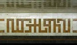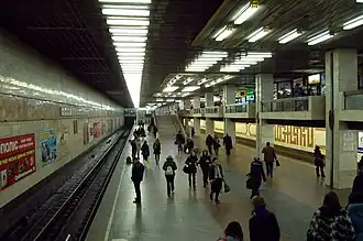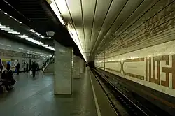 ![]() ![]() ![]() Horní obrázek je pohled na stanici od východního schodiště Dolní obrázek vlevo jsou pilíře a kolejová zeď pod galerií Dolní obrázek vpravo je název stanice v jedinečném fontu | |||||||||||||||||||||||||||||||||||||||||||||||||||||||||||||||||||||||||||||||||||||||||||||||||||||||||||||||||||||