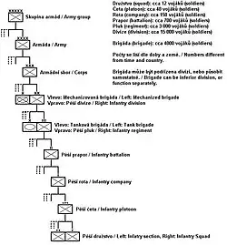 - Skupina armád – U států s velkým vojskem, se používá velitelství Skupiny armád, které spravuje větší počet armád, nebo jedno bojiště.