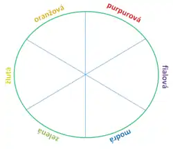 Wittgensteinovo vnímání geometrie barev se tak zásadně odlišuje od Goethova, jelikož Goethe si představuje kruh barev (viz následující obrázek).[1]