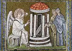 - ↑ SMITH, D. ‘Look, the place where they put him’ (Mk 16:6): The space of Jesus’ tomb in early Christian memory. HTS Teologiese Studies / Theological Studies. 2014, roč. 70, čís. 1, s. 8. (anglicky)