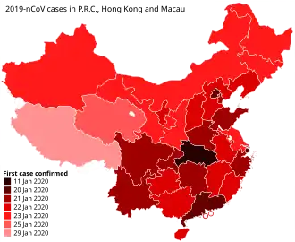 - ↑ a b 江苏全省各级各类学校延迟开学至2月底 [online]. app.cctv.com, 2020-02-05 [cit. 2020-02-07]. Dostupné online. (čínsky)