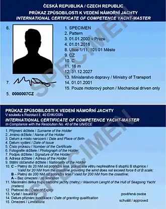 - úspěšné složení praktické zkoušky na moři před zkušebním komisařem