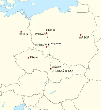 - ↑ a b Údaj je ve světovém času, místního času (středoevropský čas) bylo o 1 hodinu více.