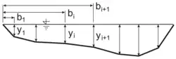 Je-li zaměřeno bodů dna o souřadnicích , tak se průtočná plocha vypočte jako