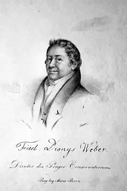Dne 31. března 1810 byla založena Jednota pro zvelebení hudby v Čechách, která po dalších sto let zajišťovala finanční provoz školy.[2] Skladatel Bedřich Diviš Weber (1766–1842), budoucí první ředitel konzervatoře, vypracoval plán nového ústavu podle vzoru Pařížské konzervatoře (založené v roce 1795) a milánské konzervatoře (založena 1807). Z důvodu tehdy probíhajících koaličních válek byla výuka zahájena až 24. dubna 1811. Výuka probíhala v dominikánském klášteře u svatého Jiljí na Starém Městě a prvním ředitelem byl Bedřich Diviš Weber, jeho zástupcem byl bývalý divadelní ředitel František Strobach.