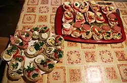 - Chlebíčky, obložené chlebíčky v dnešní podobě připravil na začátku 20. století pražský lahůdkář Jan Paukert.[10]