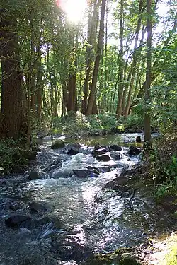 - (skrze Bakovský potok, který sám probíhá mimo popisované území)