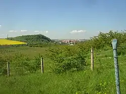 Typická krajina Turské tabule v severozápadním sousedství Prahy – pohled na Únětice z Kozích hřbetů