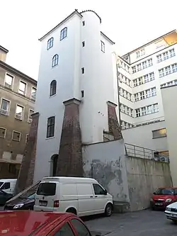 - WICHL, A. Zwei Thürme der alten Stadtmauern in Prag. Wien: s.n., 1893. Dostupné online. Popis a nákresy zbytků dvou gotických hradebních věží, zachovaných ve dvoře domu čp. 289 na Malé Straně a ve dvoře domu čp. 313 na Starém Městě pražském. Gotická hradební věž Malé Strany se nachází ve dvoře domu čp. 285 V Lázeňské ulici č. 9. Raně gotická věž staroměstského opevnění stojí ve dvoře domu čp. 313 mezi ulicemi Národní (č. 13), Karoliny Světlé (č. 2) a Bartolomějské (č. 2). Po stručném popisu obou věží následují jejich půdorysy a bokorysy..