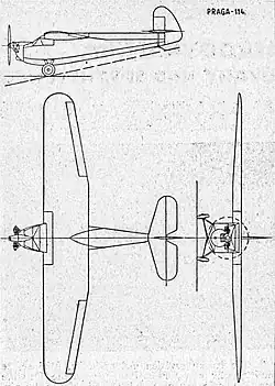 - ↑ a b c K., F. Lehké sportovní letadlo Praga 114. Letectví. Říjen 1934, roč. XIV. (1934), čís. 10, s. 370–372. Dostupné online.