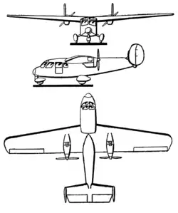 - čtyřmístný, dvoumotorový, samonosný hornoplošník. Ocasní plochy postupně jednoduché, dvojité a trojité